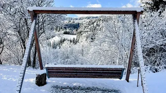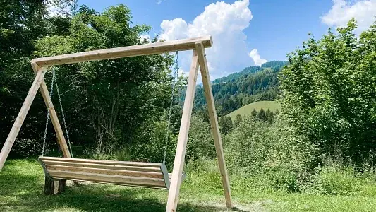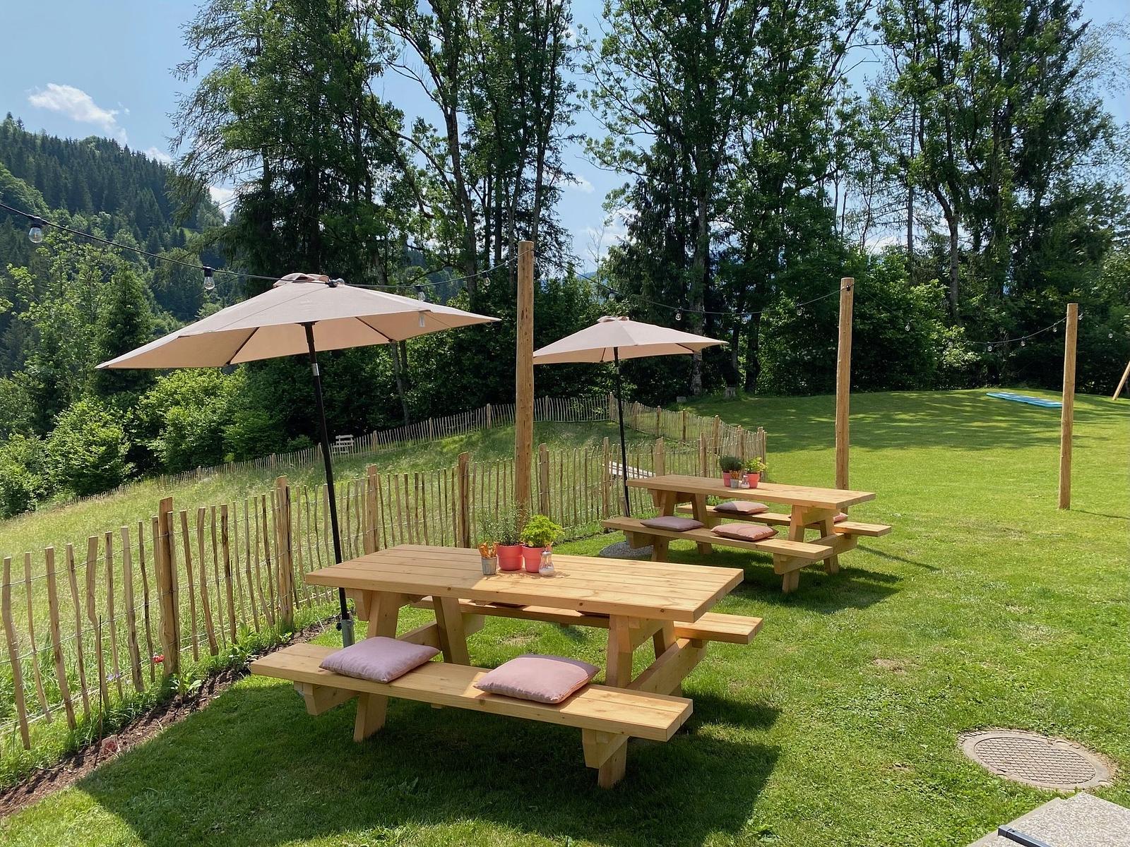 Nach einem Wandertag kannst du dich im gemeinschaftlichen Garten mit Bergblick wunderbar erholen – oder nach dem Skifahren auf deinem eigenen Balkon oder deiner privaten Terrasse ein Getränk genießen, während die Sonne hinter den Gipfeln verschwindet.